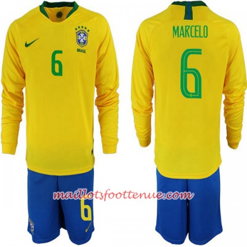 Maillot/Tenue Brésil Marcelo 6 Enfant Domicile Coupe du monde 2018 Manche Longue