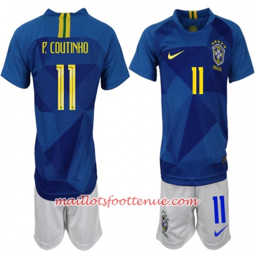 Maillot/Tenue Brésil P. Coutinho 11 Enfant Extérieur Coupe du monde 2018